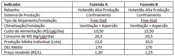 A simples troca em função de custos deve levar em consideração não só a simples redução dos mesmos mas também a capacidade de manutenção da produção ou mesmo aumento, desta. Caso contrário o produtor está “se enganando”. Redução de custo de alimentação implica em manutenção da produção com menor desembolso ou aumento de produção com menor desembolso. Vale lembrar que em alguns casos podemos propor um aumento no desembolso e conseguir proporcionar uma melhoria nos resultados. Logo, devemos analisar os números com critérios. Os números abaixo servem como base para melhor elucidar os conceitos debatidos: