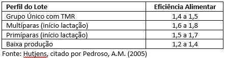 Tabela 3. Indicadores de Referência (Eficiência da Alimentação):